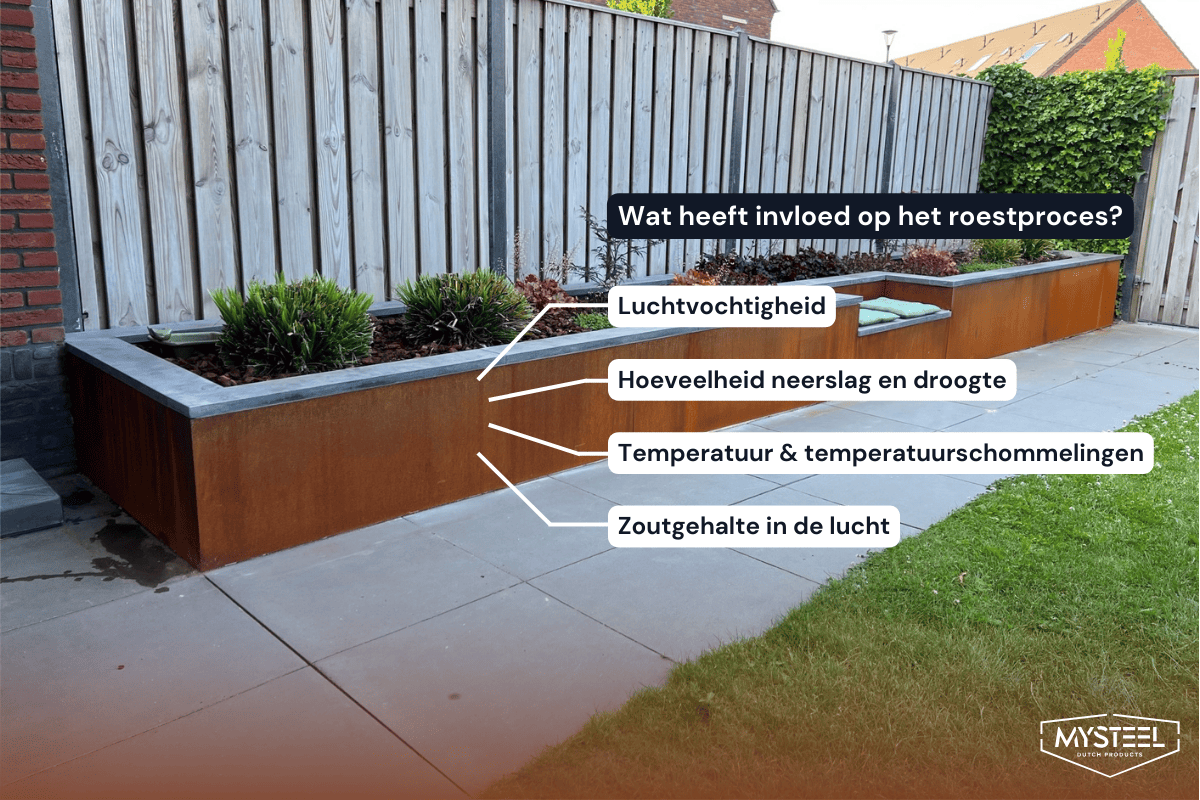 De elementen die invloed hebben op het roestproces van cortenstaal.