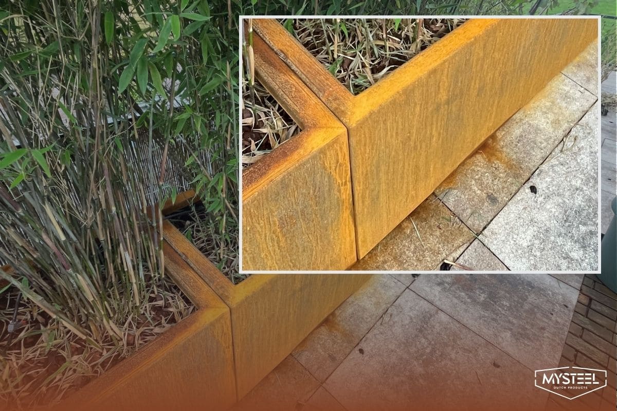 Vendar bodite pozorni, ko postavite nov element iz cortenstahla. Naravna plast rje lahko nekaj časa pušča na underlying materialih ali oblačilih. Prav tako je dobro upoštevati ostre robove, ki jih lahko ima material, zlasti v bližini otrok ali živali.