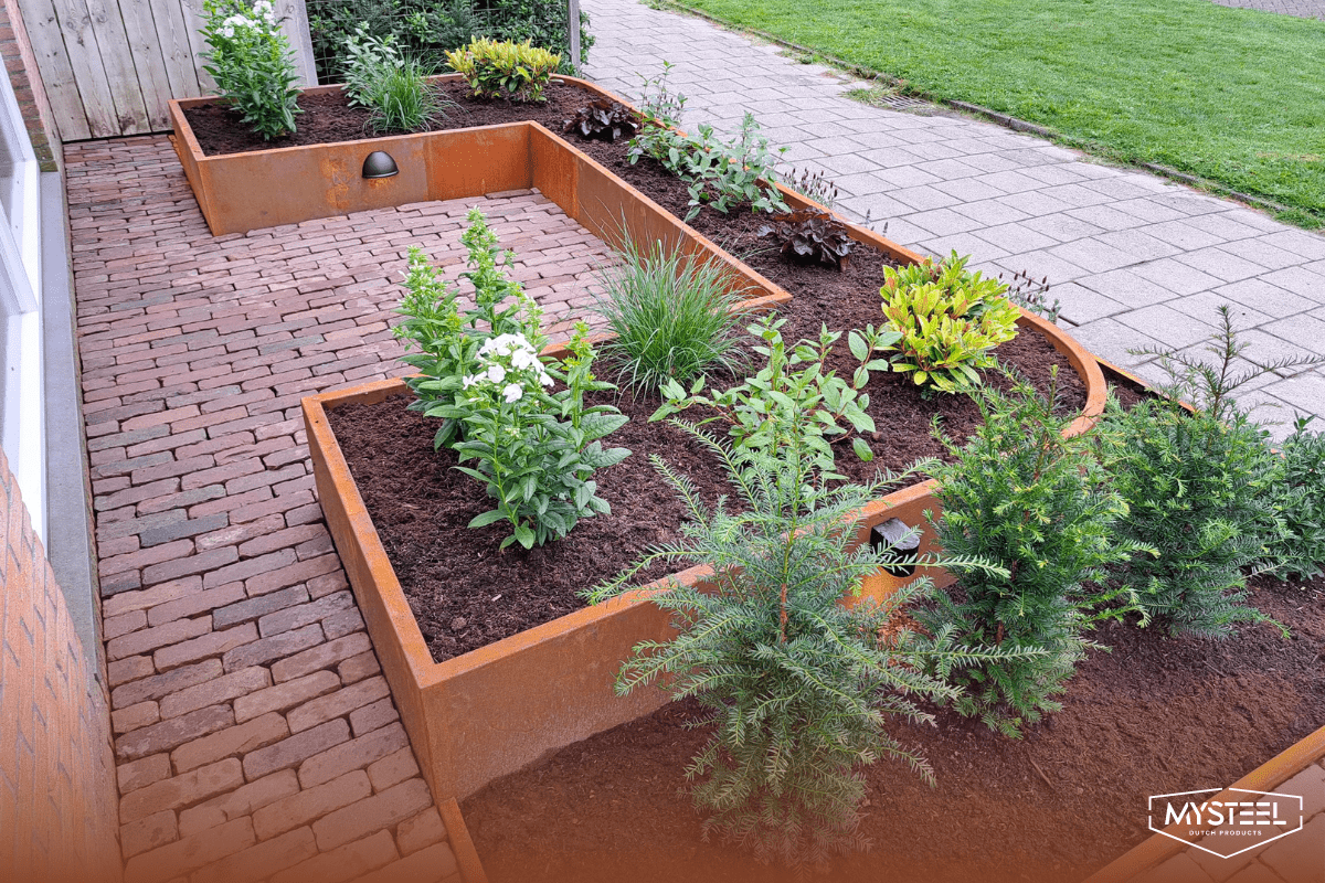 Če ima tvoj vrt višinske razlike, lahko ustvariš povišane terase. Uporabi jeklene podporne stene, da podpreš te terase in zadržiš višinsko razliko.