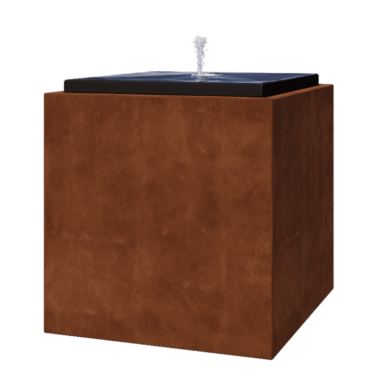 Vodni okrasek je opremljen z ustrezno črpalko z vrvico. Črpalka v posodi poskrbi za črpanje vode. Voda bo nato tekla po notranji plošči, preden bo padla nazaj v posodo. Vodni okrasek iz jekla Corten boste morali prvih nekaj mesecev, dokler rja ne bo popolnoma zarjavela, zamenjati z vodo. V primeru zmrzali je treba črpalko izklopiti. Kot dodatno možnost lahko izberete osvetlitev LED.