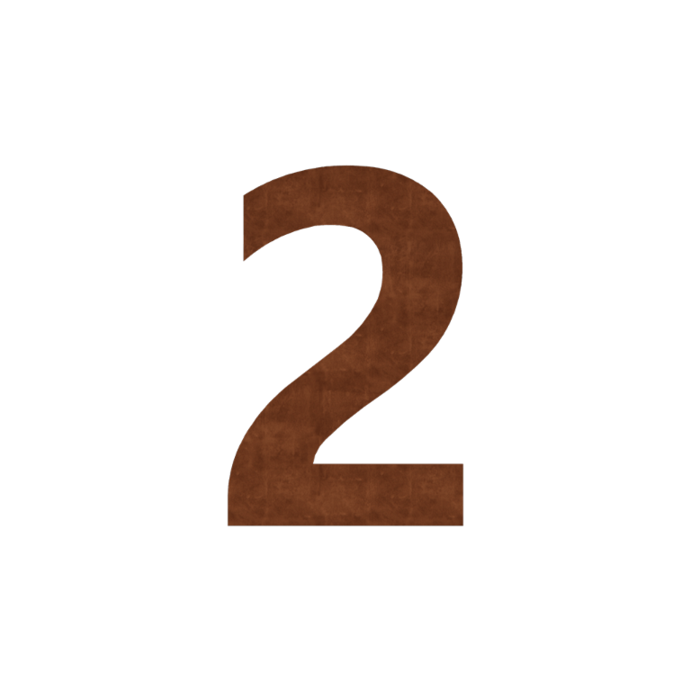Ta hišna številka je opremljena z distančniki, ki zagotavljajo, da je hišna številka nameščena z majhno razdaljo od stene. Distančniki zagotavljajo urejen končni rezultat, pri katerem se zdi, da hišna številka lebdi. Pri montaži zavijete priložene žične zatiče v navoje distančnikov, te pa nato potisnete v (s silikonom napolnjen) vrtalni otvor v steni. Po sušenju silikona ostane hišna številka trdno pritrjena v steni. Hišna številka je dobavljena nerjaveča, v sivi barvi kovine. Začetek procesa rjavenja se začne v prvih 2 mesecih, za to ni potrebna nobena obdelava. Med procesom rjavenja lahko hišna številka pušča.