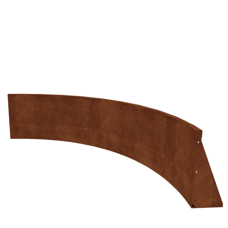Corten jeklena škarpa - Notranji lok - 150 x 150 x 50 cm ustvari ostre notranje zavoje. Široka spodnja polica zagotavlja stabilnost brez potrebe po temeljenju, več elementov pa hitro namestite z vključenim montažnim materialom. Trpežno Corten jeklo zagotavlja dolgo življenjsko dobo in minimalno vzdrževanje. Proces rjavenja se začne v nekaj tednih do mesecih in razvije topel oranžno-rjav odtenek; celoten proces lahko traja 1 do 2 leti. Naročite zdaj in uživajte v večletni, nizko vzdrževani in močni pregradi.