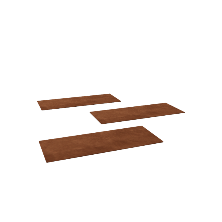 Ta stopna plošča je izdelana iz visokokakovostnega Corten jekla, ki se samozaščiti s tvorbo naravne rjave plasti. Proces rjavenja se začne v nekaj tednih do mesecih in površini doda topel oranžno-rjavi odtenek. Celoten proces rjavenja lahko traja med 1 in 2 letoma. Proces rjavenja lahko pospešite z uporabo MySteel pospeševalca rje. Ta zaščitni sloj zagotavlja vzdržljivost in dolgo življenjsko dobo, tudi ob spremenljivih vremenskih pogojih.