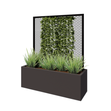 Paneli naših modularnih rastlinskih okvirjev so izdelani iz visokokakovostne Corten-A jeklene pločevine. Ta vrsta kovine ima edinstveno lastnost, da tvori zelo gosto oksidno plast (rjavenje) . Rjavenje je zato nemogoče. Zaradi goste oksidne plasti je material, ki leži globlje, zaščiten pred kisikom, kar močno upočasni oksidacijo, medtem ko se korozija še naprej odvija. Corten jekleni rastlinski okvir se dobavi nerjaveč, v sivi kovinski barvi. Proces rjavenja se začne po nekaj tednih do 2 mesecev, za to ni potrebna nobena obdelava. Med procesom rjavenja lahko rastlinski okvir pušča barvo. Corten jeklo je zlitina kovin, ki vsebuje železo, v katerega so dodani baker, fosfor, silicij, nikelj in krom.