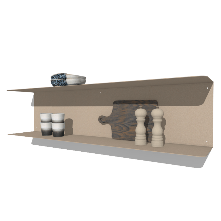 Te stenske police so izdelane iz visokokakovostnega sendzimirja pocinkanega jekla in nato prašno barvane v različnih barvah. Prašno barvanje je elektrostatičen postopek, pri katerem se s pištolo za pršenje nanese prah na kovino. Med strjevanjem v pečici se delci prahu najprej segrejejo in postanejo tekoči. Nato postanejo lepljivi in na koncu strjeni v lepo, trajno prevleko. Zaradi prevleke je stenska polica izjemno odporna na UV žarke.
