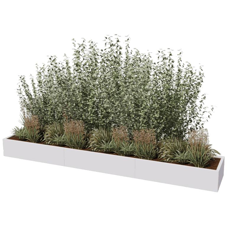 Ta rastlinska posoda je modularna jeklena rastlinska posoda, ki se dobavlja kot gradbeni komplet. Rastlinska posoda je sestavljena iz ločenih panelov in vogalnih kosov. Posode se lahko popolnoma slepo povežejo. Vse pritrditve so skrite. Zaradi našega modularnega sistema so možne tudi zelo velike dimenzije. Z uporabo vogalnih kosov so možne edinstvene oblike, ki jih drugje ni mogoče standardno dobiti. Oglejte si navodila za več informacij.