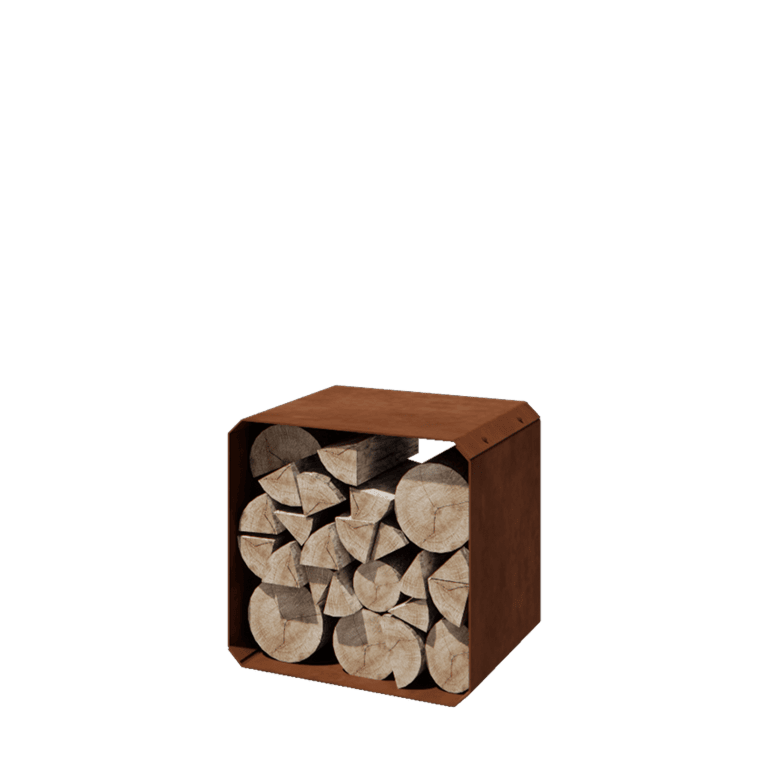 Ta regal za drva ima dimenzije 40 x 40 x 40 cm in je izdelan iz 3 milimetre debeline Corten jekla. Kubus je priložen z montažnim materialom, kar omogoča enostavno sestavljanje. Po sestavi stoji trdno in je takoj pripravljen za uporabo.