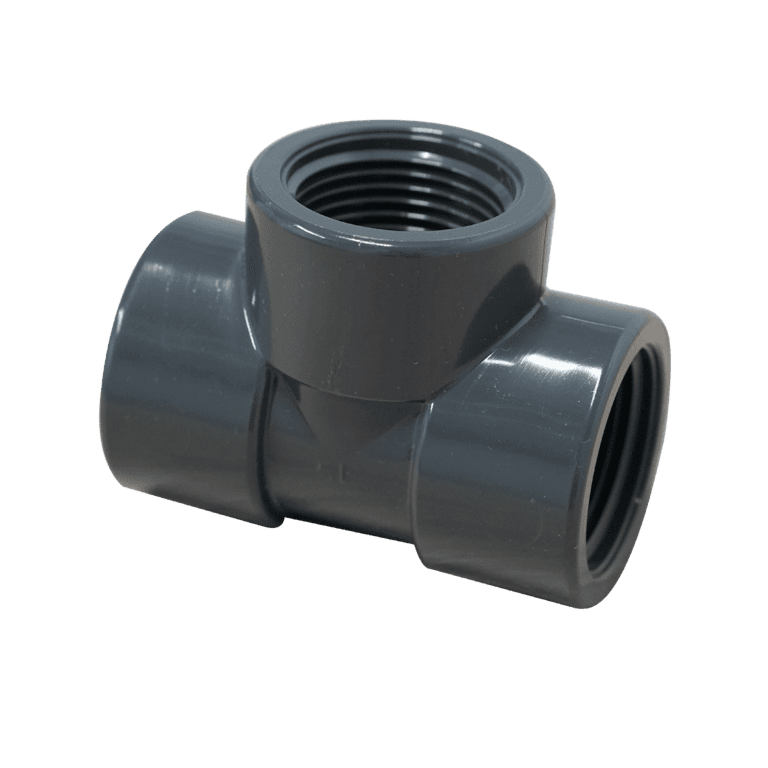Ta tlačni PVC T-kos se uporablja za razvejitev vodovodne cevi v vodni mizi. Zahvaljujoč trem 1-palčnim notranjim navojnim priključkom lahko enostavno priključite več delov.