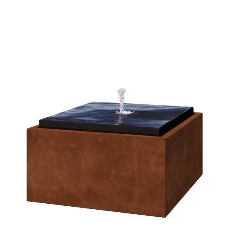 Vodni okrasek je opremljen z ustrezno črpalko z vrvico. Črpalka v posodi poskrbi za črpanje vode. Voda bo nato tekla po notranji plošči, preden bo padla nazaj v posodo. Vodni okrasek iz jekla Corten boste morali prvih nekaj mesecev, dokler rja ne bo popolnoma zarjavela, zamenjati z vodo. V primeru zmrzali je treba črpalko izklopiti. Kot dodatno možnost lahko izberete osvetlitev LED.