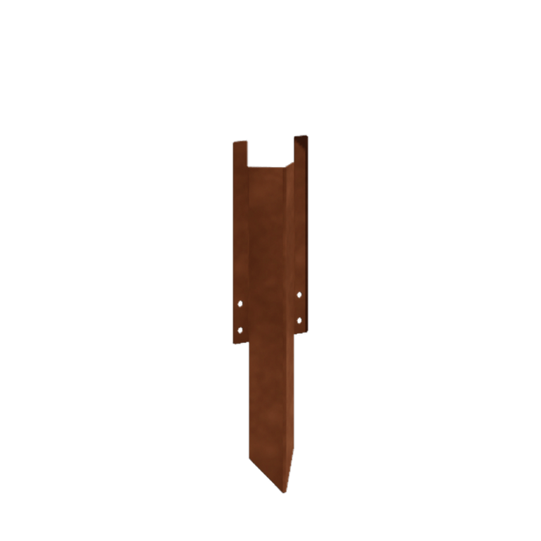 Corten jekleni talni zatič – za višine robnega traku 22–25 cm zagotavlja trdno zasidranost. Izdelan je iz 1,5 mm Corten jekla v enem kosu, kar omogoča hitro in stabilno namestitev brez ločenih delov. Proces rje se začne v nekaj tednih do mesecih in ustvari toplo oranžno-rjavo barvo; dokončanje rjavljenja lahko traja 1–2 leti. Naročite zdaj in uživajte v urejeni, trajni obrobi.